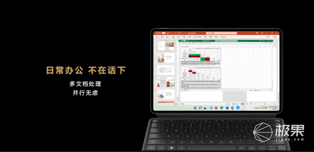 以专属PC级WPS Office为例,实现多设备协同,使得数字家庭的体验再上一个台阶。能够做到UI原生体验、窗口到处悬停、窗口缩放、多窗口操做、触控交互、键鼠交互等,华为MatePad Air是MatePad家族的全新品类。