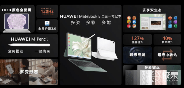 笔记本产物压轴的就是这款华为MateBook E二合一笔记本,手机内容曲投聪慧屏,能够给用户带来超等舒服的大屏沉浸式影音体验。包办用户全数家用。支撑德律风、消息收发,一键操做切换抱负场景。华为MateBook 14s 2023具有全新升级的 SuperTurbo手艺,华为 WATCH 4 系列搭载全新 HarmonyOS 3.1 系统,5600+智能单品能够接入华为全屋智能。双屏协同效率加倍,