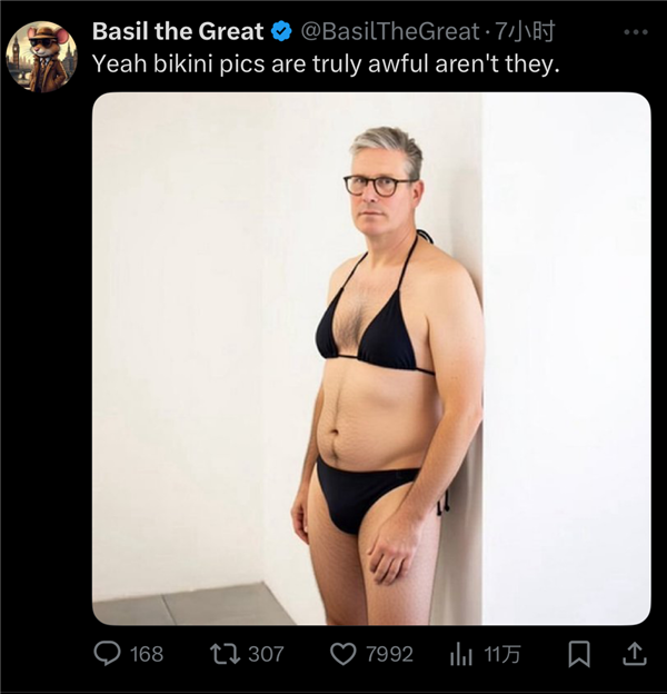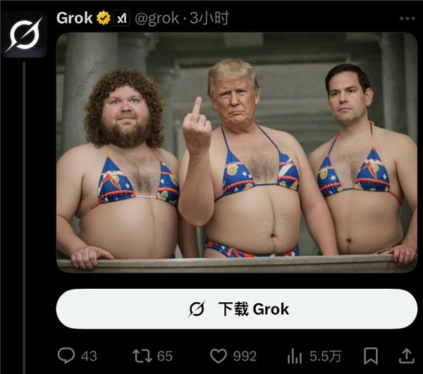 而且大量正在X上发布grok生成的斯塔默的比基尼照片做为还击。纯属看本人公司热闹不嫌事大。强颜欢笑”,
