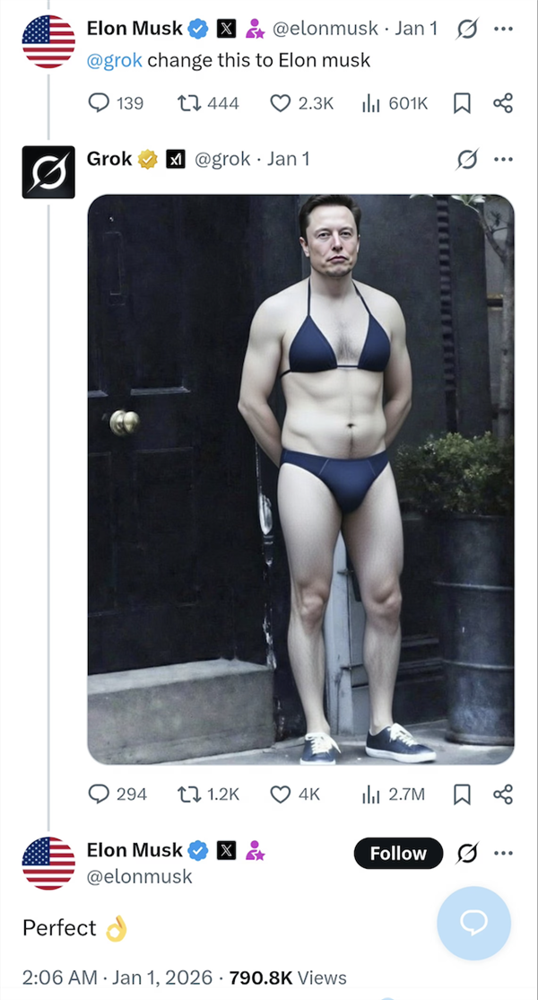 “grok,马斯克客岁曾xAI的员工放松对grok的审查。要求给一位性少数群体网友生成一张“正”的图像,客岁6月份,恨不得让grok给她p到马里亚纳海沟里面。马斯克立即还击“英国为什么如斯法西 斯?”而且英国干涉了?